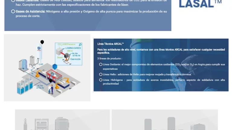 Acompañando la tendencia de migrar los cortes mecánicos a corte con equipos de láser, Air Liquide provee sus productos LASALTM logrando que los clientes incrementen la productividad y vida útil de sus equipos, al contar con productos con calidad certificada y niveles de pureza únicos en el mercado nacional. Hoy muchos de nuestros clientes cuentan con nuestros tanques de alta presión para el abastecimiento de LASAL 2001TM GRANEL (nitrógeno calidad láser), beneficiándose con cortes de mejor calidad y a una elevada velocidad.