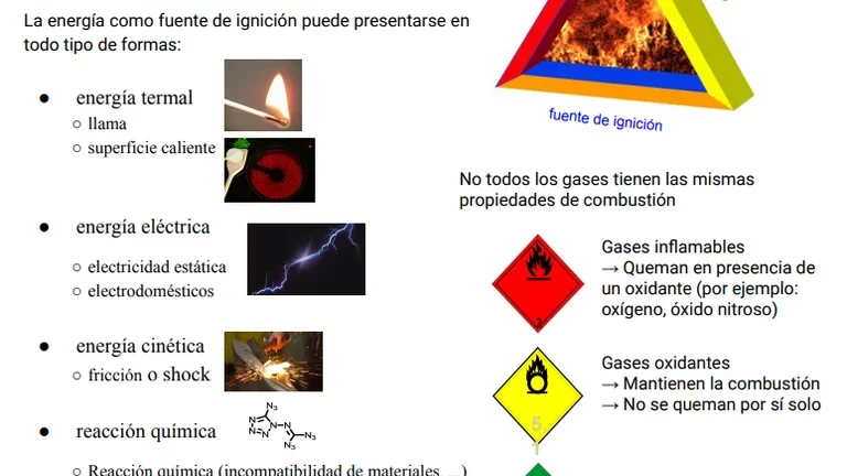 El triángulo de fuego representa todos los elementos necesarios para que ocurra una explosión o ignición. Se requieren tres elementos: